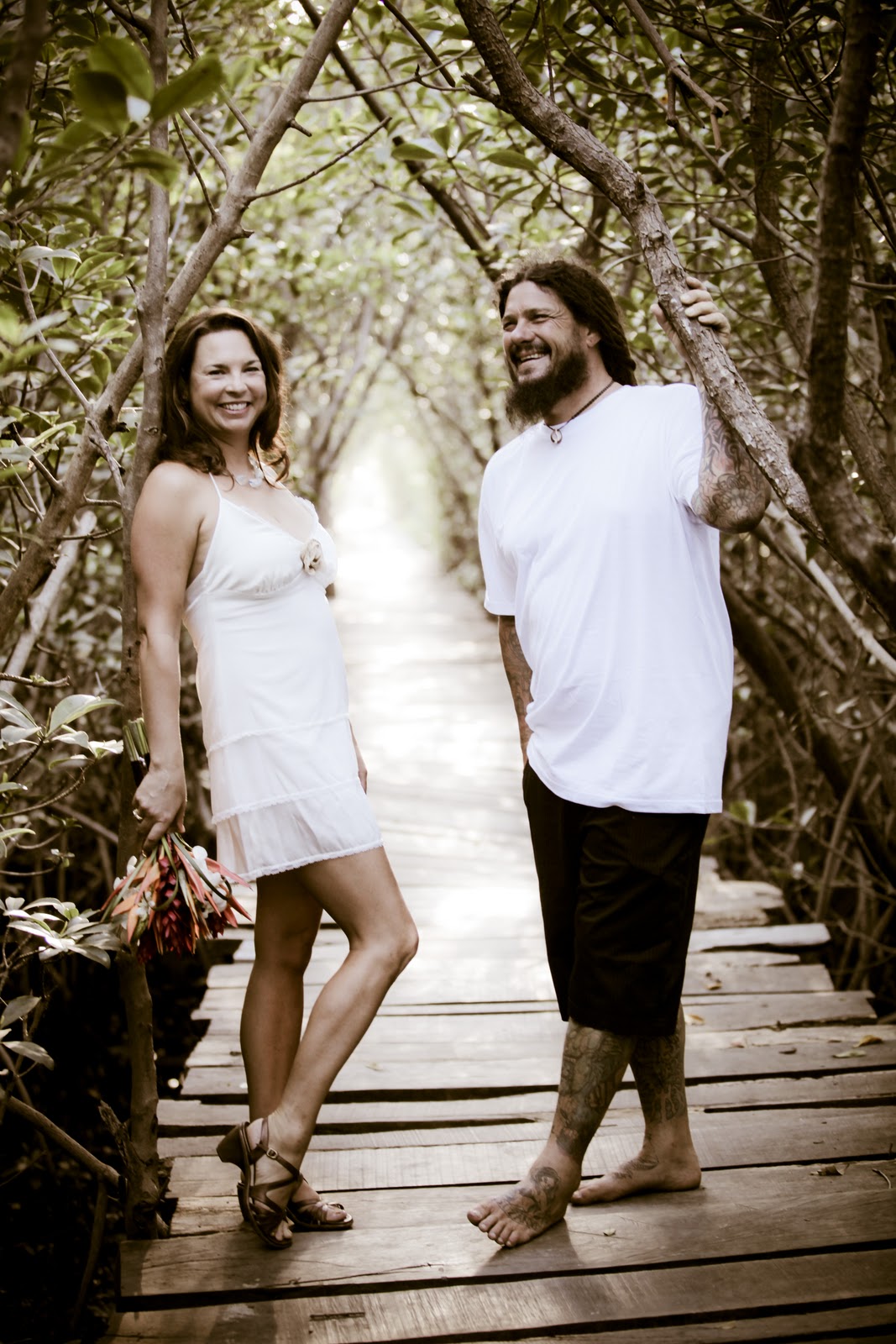 Suzanne and James planned a very simple wedding Costa Rican style. Suzanne chose a very casual traditional Costa Rican style beach dress. It was the smallest wedding dress I have ever shot! James lucked out getting to wear a T-shirt and shorts and sported bare feet. The couple reside in Northern California but own property and spend a lot of time in Costa Rica. The property that we stayed at in Avellanos (North West Coast) has 7 houses or casitas, each casita took on a wedding job as a vendor for the day. One home made authentic looking Costa Rican cake, which was amazing. One house did all of the flowers from the bouquet to the ceremony pieces. A few of the men went down and dug holes in the sand to make a walkway of palms, made a ceremony site, and laid an isle. It was great to be able to see it all happen and document it during the getting ready’s. The actual ceremony was private and took place on a wooden bridge over a Mangrove Swamp. It was gorgeous, hot but gorgeous. It was just the couple and their children and me! 🙂 I always get to be in the cool places. After the private ceremony the couple walked down to the beach where they were greeted by their guests. They then continued the ceremony with their friends by reading letters from guests that could not attend, and a few other cool wedding traditions from different cultures. A great classy reception followed which was laid back and tons of fun.