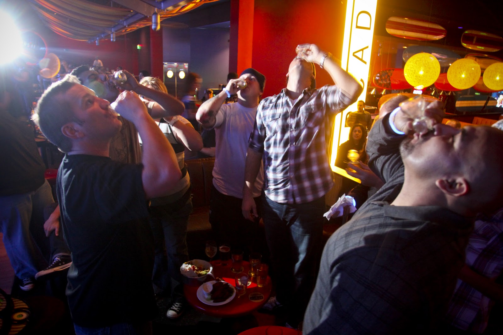 Frank and the “Smoking Bowls” toast at the bar with their free drinks!