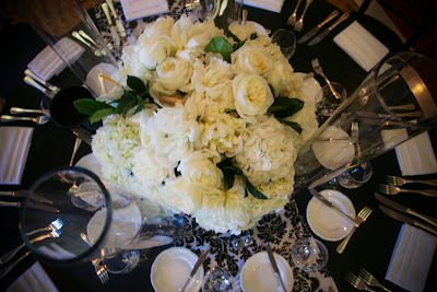 The centerpieces were mixed with tall and lower table tops. I thought it was very creative that she wrapped these around the vase instead of putting them inside, at night they were beautifully lit.