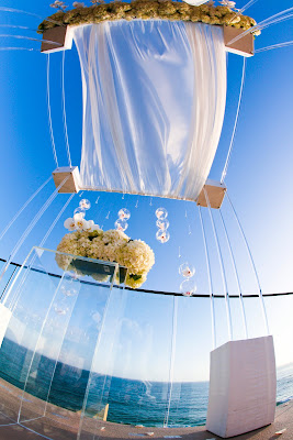 >Congrats Lisa & Kevin on their recent wedding on June 12th, 2010. Surf & Sand Resort in Laguna Beach, California is a very popular beach side wedding venue. With a modern Spanish style feel and parked right against the sand, this venue offers a breezy relaxed high end venue. Ceremony sites overlook the beautiful ocean, and the grounds are lined with greenery and a rustic Spanish style atmosphere for great wedding pictures throughout. The ballroom, big and small, are perfect for any wedding and the hotel rooms are modern, airy, and the suites overlooking the ocean are breathtaking. I was also very impressed when I arrived at the wedding to see the design work of Larrissa with Inviting Occasion. From the ceremony to the table tops, Larissa’s originality and creativity floored me. I see a lot of weddings, and these days it is getting harder and harder to impress me. It seems I see the same 5 weddings done over and over again. Not this wedding, and not with Larrissa doing the design. If the bride would have told me she was doing babies breathe as the centerpieces I would have been mortified, but when I saw what she did my jaw dropped……it was amazing! I have never seen design work like hers before, very inventive. Wanted to share this venue and wedding designer with you since I was so impressed. I will blog about the wedding soon.