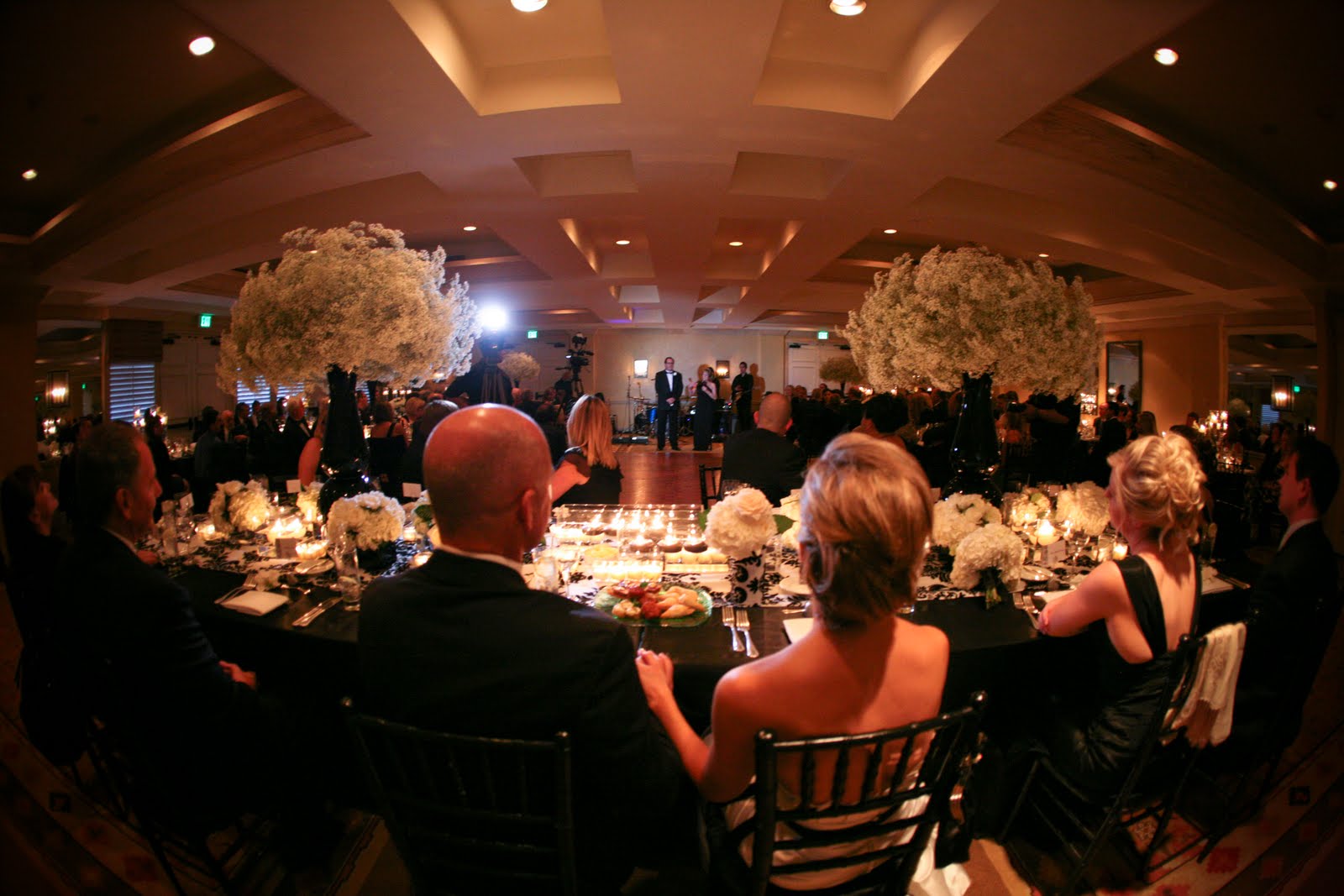 Bride and groom at head table watching the parent speeches!