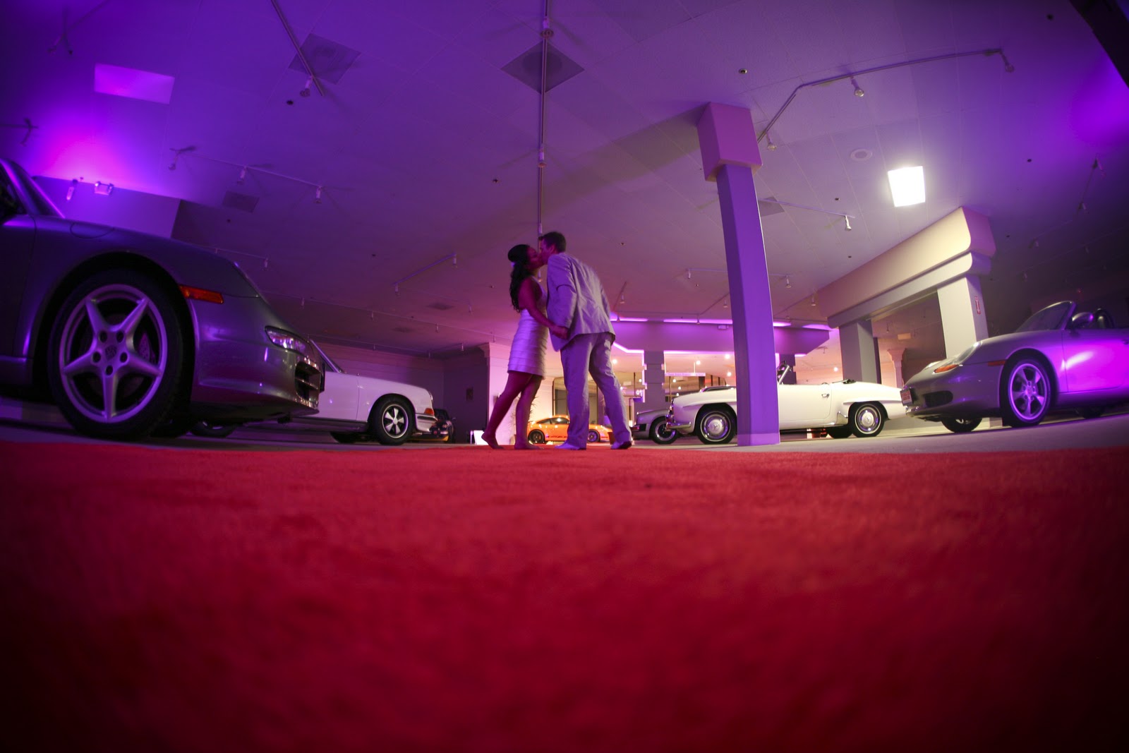 I really loved this non-traditional wedding I shot at a Euromasters Classic Cars Showroom in Fountain Valley, California. The wedding was uniquely themed as a “Nightclub” wedding, which as the images show definitely looked more like a night club then a wedding. There was live performances, plenty of details, a game room with Dance Dance Revolution and air hockey, as well as a well equipped dance floor including a semi-famous DJ and flat screen TV’s, very different and FUN! This venue is a “Must See” for any event or wedding. Think out of the box and look here before you go to a hotel or Country Club, this is place is classy, fun, and unique. It is a 37,000 sq ft. venue and I highly recommend it!