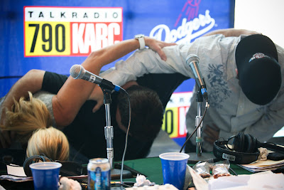 >Frosty, Heidi, and Frank are the best radio personalities of all time and the most entertaining show on talk radio! This may be a little different than most of the blogs I post, but I am a HUGE Frosty, Heidi, and Frank (FHF) fan! They used to be on 97.1fm between Howard Stern & Tom Leykis, then went to 790am (not by choice) as 97.1 went top 40….boring! Anyhow, I have listened to Frosty, Heidi, and Frank for more than 8 years. I really got hooked when I could listen online and podcast them because I sit at my computer and edit thousands of images a week. FHF have became my friends over the years, as I listen to the 3 of them for the 3 hours a day that they are on the radio. On my family vacation that I just blogged about, I listened to them via podcast and head phones as I drove for hours and hours through the night. I would laugh out loud and it really helped with the drive. When I heard about another LIVE show, where they broadcast while fans watch, I finally called my best friend and said “We are going!” After all of the these years, I was finally getting there. I was glad I did! Not only was it really weird to see them do that show live after just listening to their voices all of these years, but they had 3 major announcements that I would have kicked myself if I was sitting at home listening. The first announcement was, they were leaving 790am and would no longer be on the air. Second, Frosty is leaving the FHF show after 17 years of a very successful show. At this point I looked around and everyone in the room was crying. Frosty gave a very touching speech and I think listeners were stunned and sad. But third, the Heidi and Frank show will go on! You can now go on their website and listen from 10am-Noon starting October 4th streaming live and website launched September 20th! You can also download the podcast and listen later, they even have an app for your phone. Please support the show if you are already a listener and if you have never heard them before you really should start! Not a fan of much, but huge fan of them! Below are pics of the Live Frosty, Heidi, and Frank Show at Morongo Casino on Friday, September 10th. Enjoys fans, you missed out!