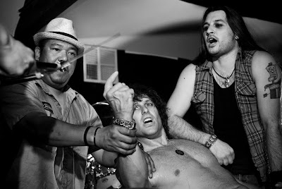 >Ninefinger is a Los Angeles based band that has a lot of charisma and character! I first met them and shot them onstage while performing in LA. Ninfinger “cut” the lead singers finger off onstage, real or fake? Either way, this publicity stunt put Ninefinger on the map. On You Tube the band got 10’s of thousands of hits and even got banned from You Tube for the finger cutting being too realistic. This band was so fun to hang out with. I will blog their Orange County photo shoot next. Watch for this band!