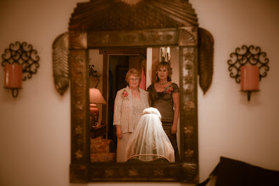 Love this Shot! Both Mom’s get their first glance of the bride….shot in a mirror behind the bride….priceless!