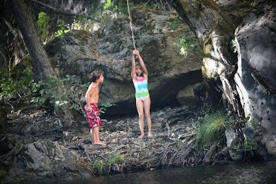 Landon was the only one to brave the freezing water to get to the swing rope. I was so proud of him as he coached his cousin and gave her support. She never jumped! You can see her below crying in the background, that lasted about 15 minutes.