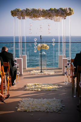 Cocktail Hour takes place on the 2nd story of Villa Del Sol, separating guests from the couple and allowing time to transform the ceremony space into reception.